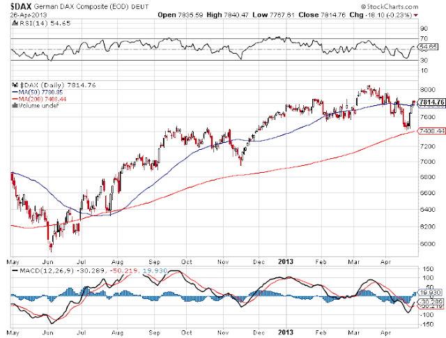 A chart of the DAX: after tagging the 200-day SMA a bounce occurred and now we’re again above the 50-day SMA. The chart doesn’t look very bullish though.